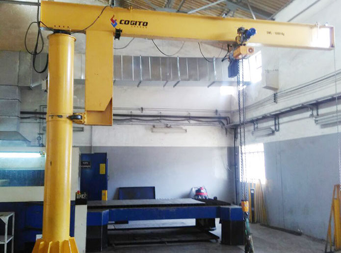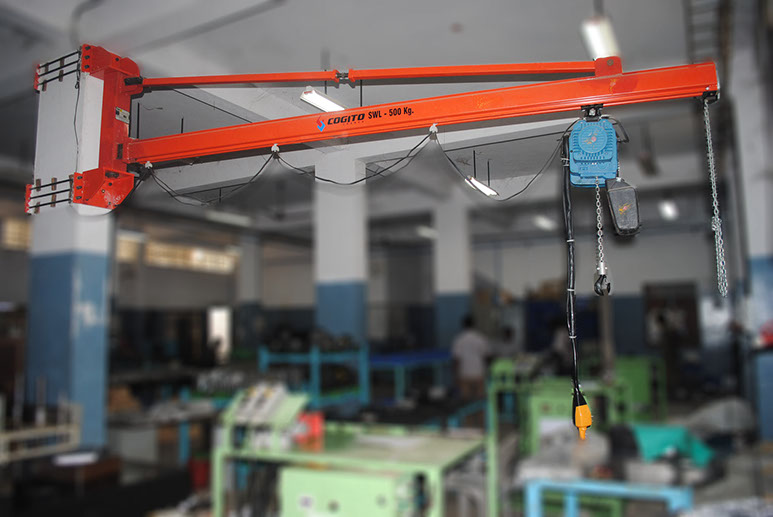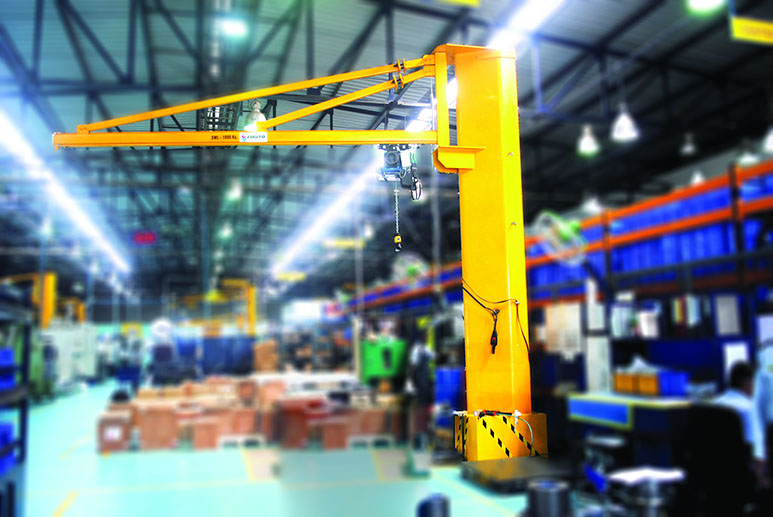 Great Bustard Jib Cranes have rolled beam as the Jib Arm with reaction arms. This makes them capable of taking larger loads. This jib cranes are available normally as column mounted, however wall mounted can also be supplied. They can have electric swiveling and electric cross travel.